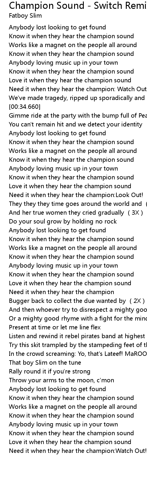 | [01:09.860] | Need it when they hear the champion: Look Out! |