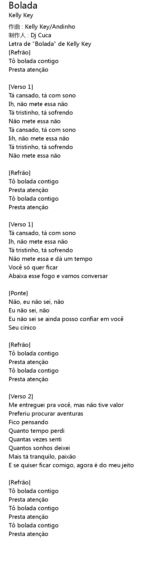 | Letra de "Bolada" de Kelly Key | |