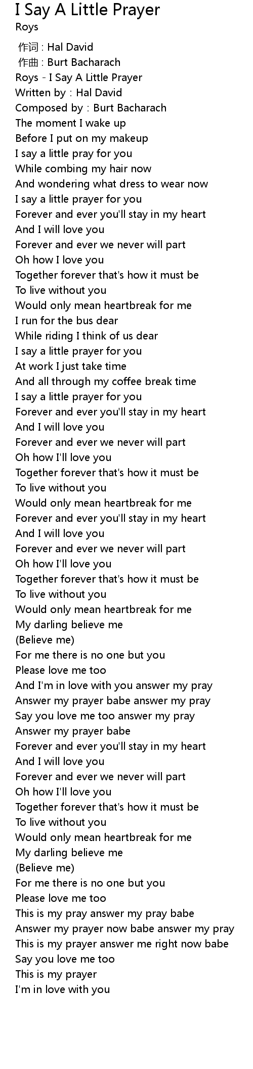 | [00:00.31] | Roys I Say A Little Prayer |