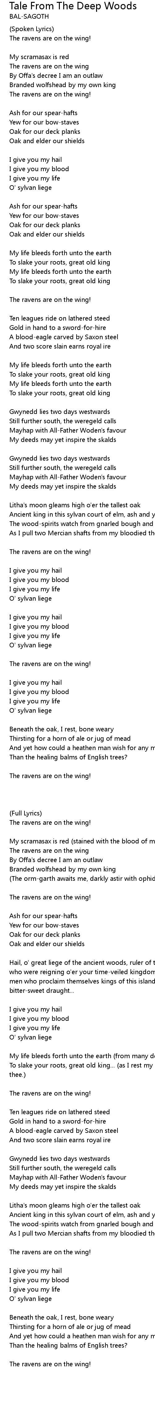 Hail, o' great liege of the ancient woods, ruler of the deepest forest... you, who were reigning o'er your time-veiled kingdom centuries before the arrogant men who proclaim themselves kings of this island ever supped of life's bitter-sweet draught... |