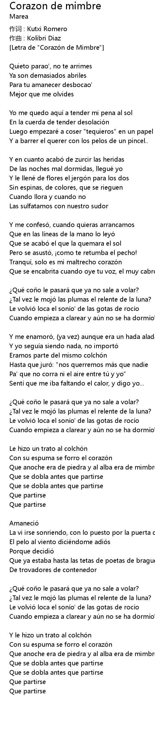 | [Letra de "Corazón de Mimbre"] | |