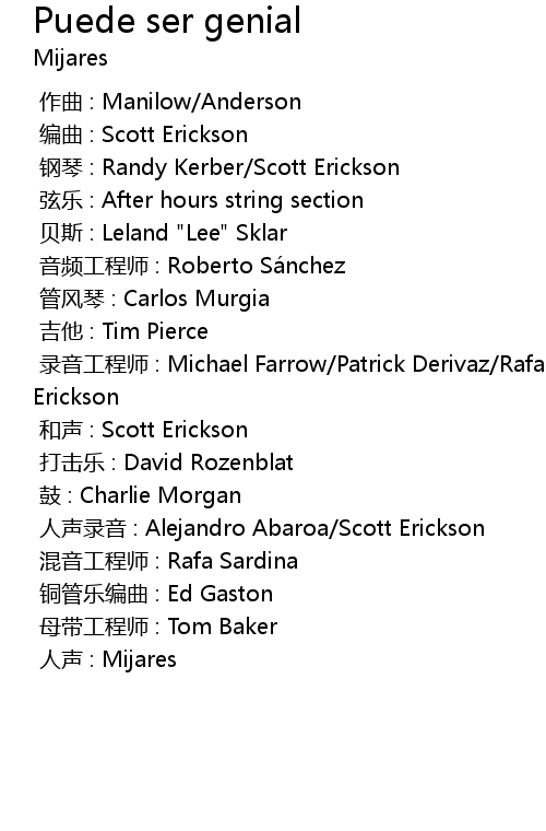 | [00:00.000] | 人声录音 : Alejandro Abaroa/Scott Erickson |