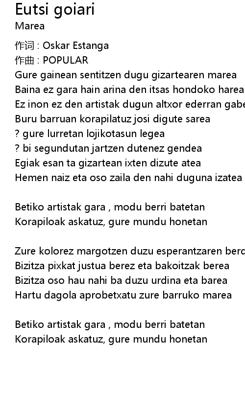 | Zure kolorez margotzen duzu esperantzaren berdea | |