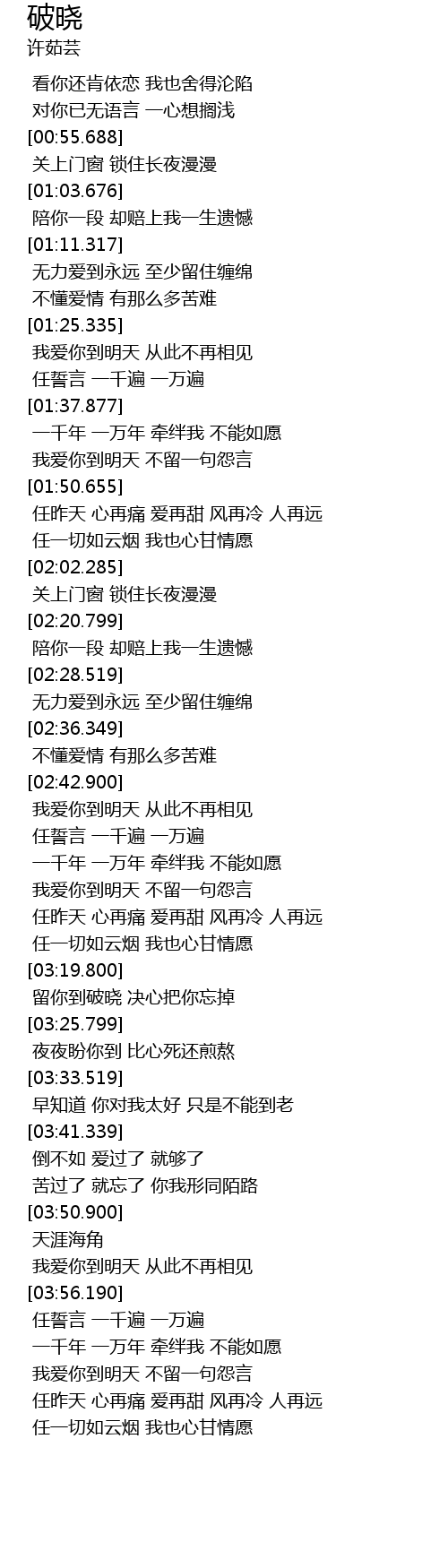 | [03:56.179] | 我爱你到明天 从此不再相见 |