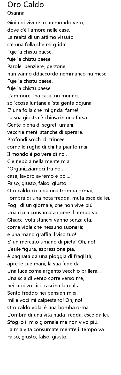 | Oro caldo cola da una tromba ormai | |