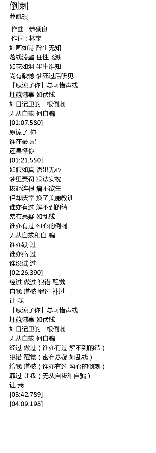 | [01:59.900] | 谁亦有过 勾心的倒刺 |