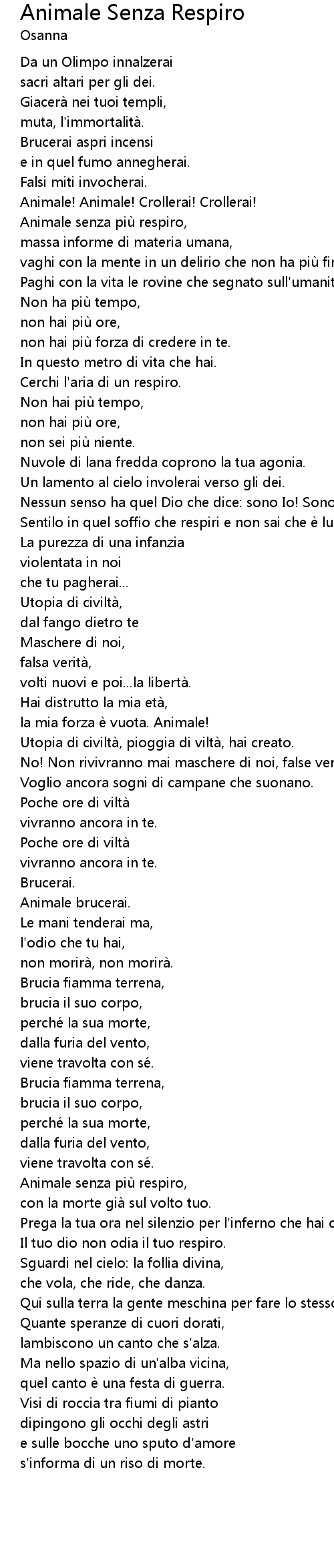 | Animale senza piu respiro, | |
