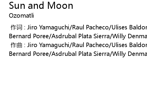 | [00:00.000] | 作曲 : Jiro Yamaguchi/Raul Pacheco/Ulises Baldomero Bella/Justin Bernard Poree/Asdrubal Plata Sierra/Willy Denmark Abers |