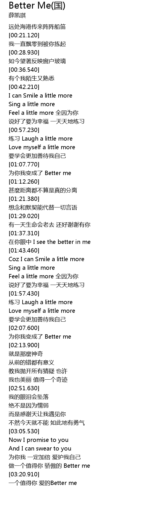 | [03:22.530] | 一个值得你 爱的Better me |