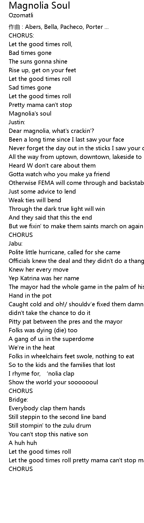 | Let the good times roll pretty mama can' t stop magnolias soul | |