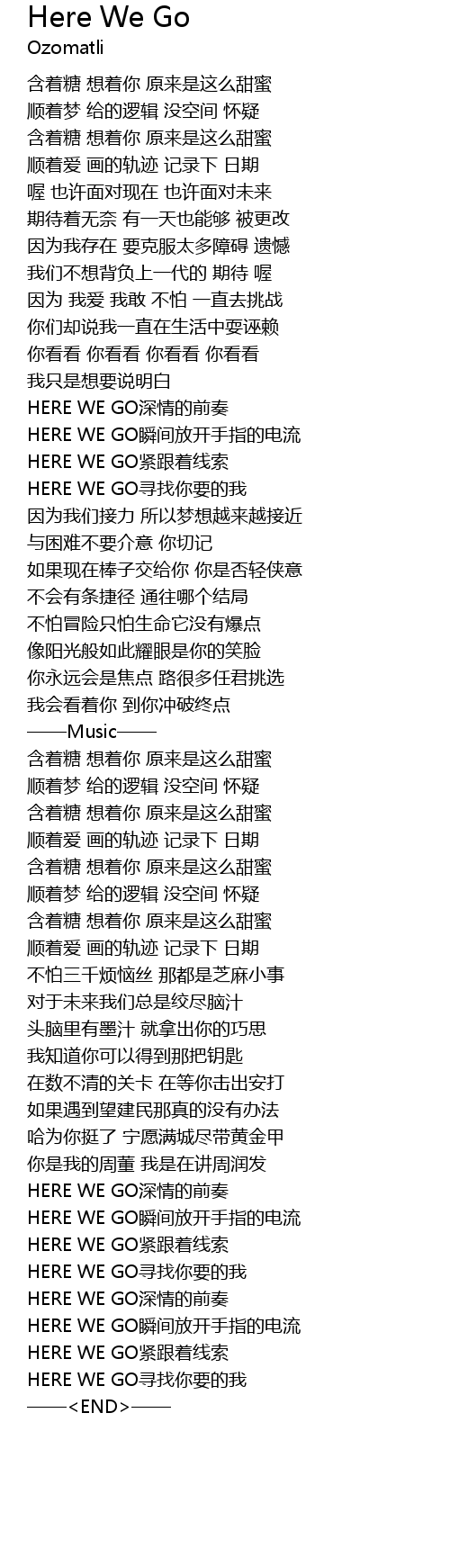 | [00:59.01] | HERE WE GO jin gen zhe xian suo |
