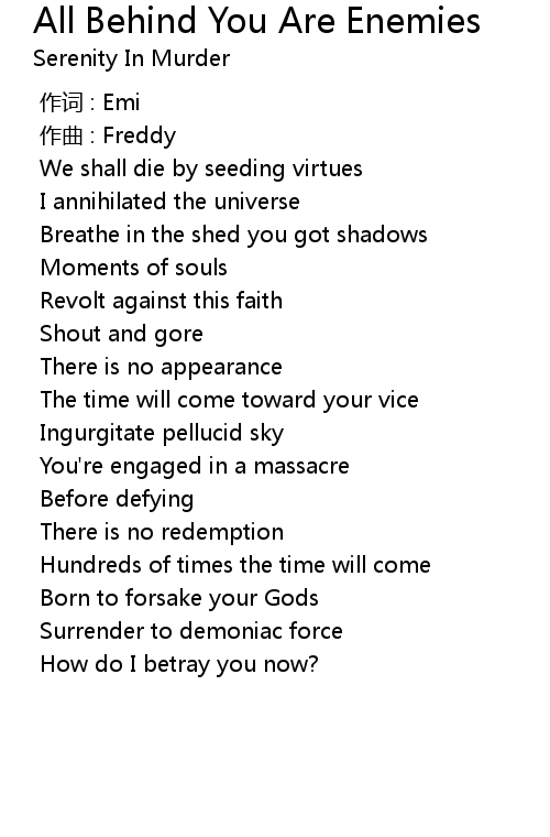 | Song | All Behind You Are Enemies |