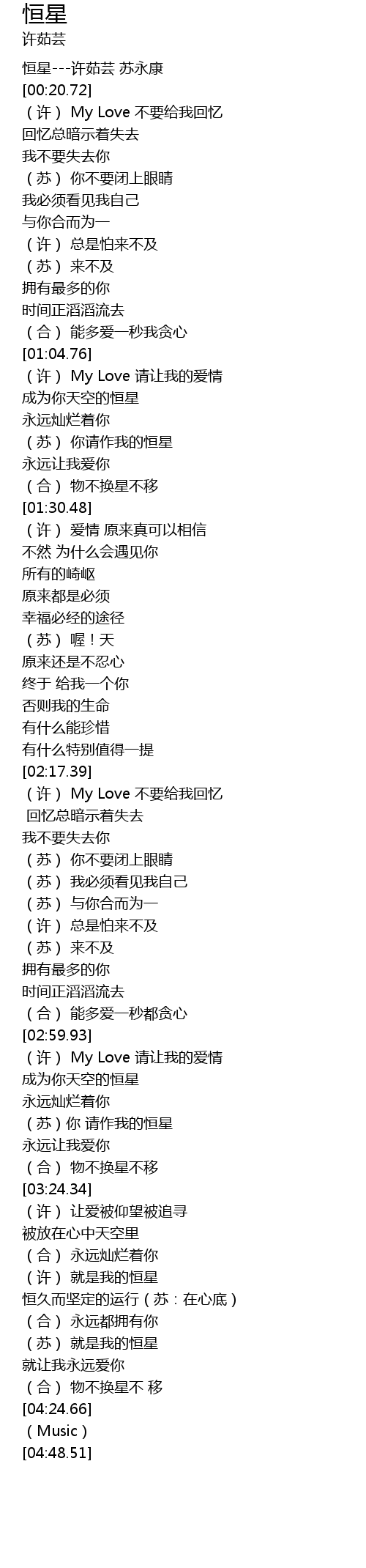 | [00:13.10] | 恒星---许茹芸 苏永康 |