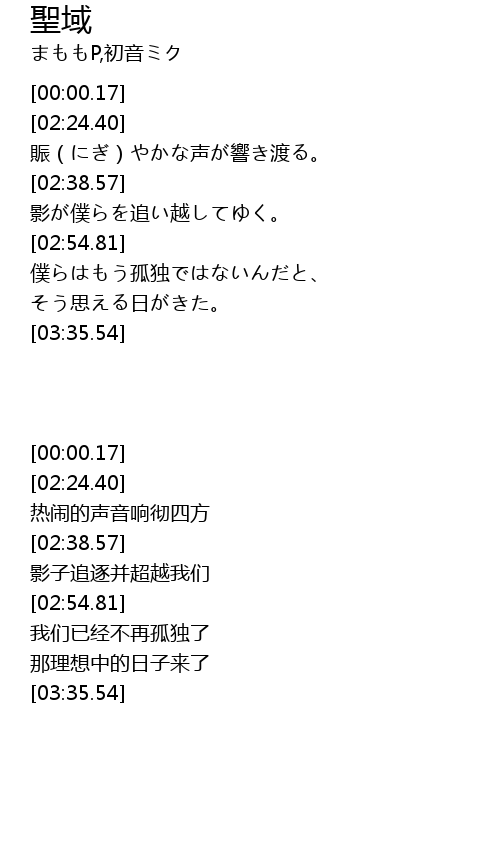 | [02:41.64] | 影が僕らを追い越してゆく。 |