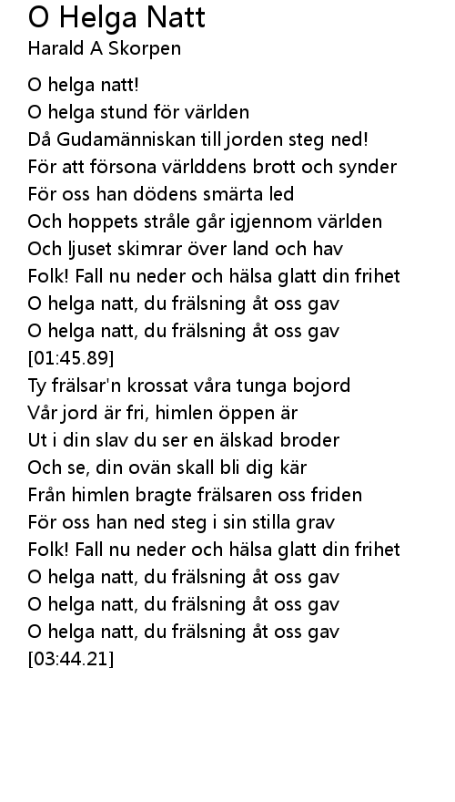 | [03:03.82] | O helga natt, du frälsning åt oss gav |