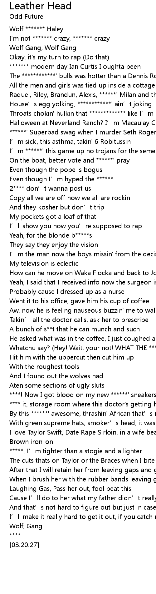| [01:06.53] | Throats chokin' hulkin that ************* like I’m Hulk Hogan |