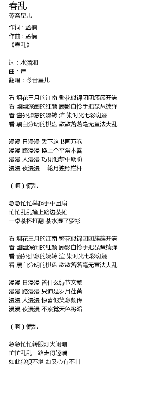 | Song | 春乱 |