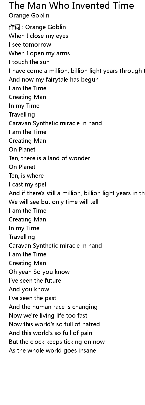 | Song | The Man Who Invented Time |