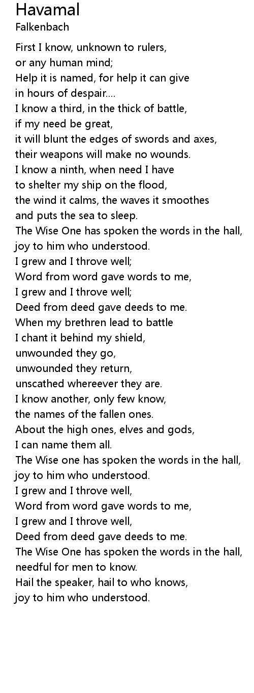 About the high ones, elves and gods, |