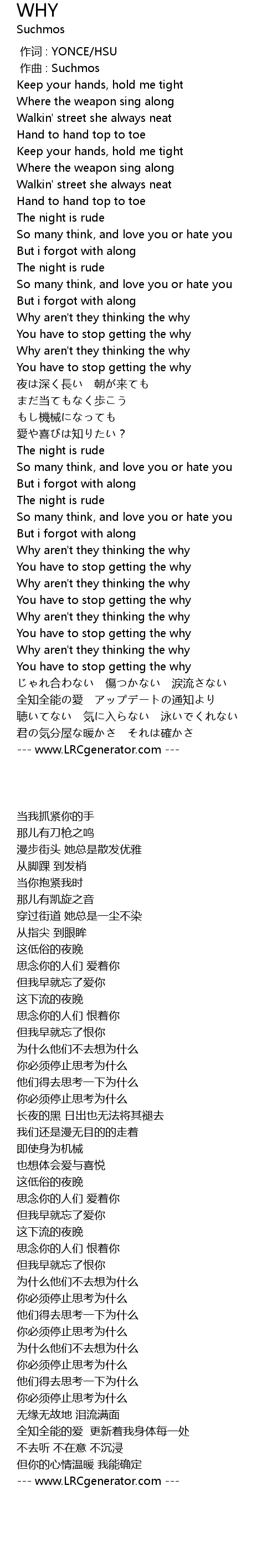 | [02:41.66] | Why aren't they thinking the why |