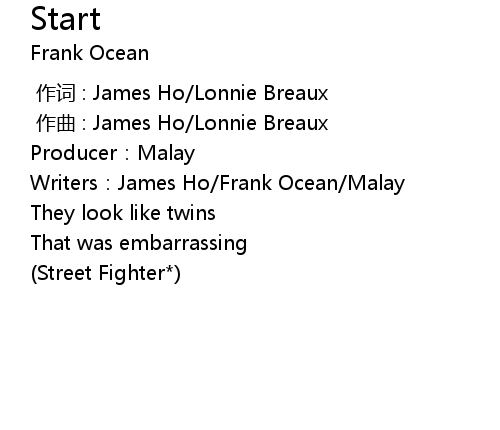 | [00:01.287] | Writers: James Ho Frank Ocean Malay |