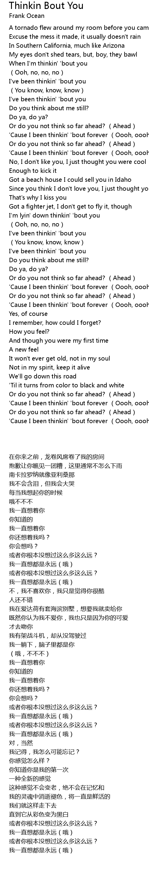 | [01:28.380] | I' ve been thinkin' ' bout you |
