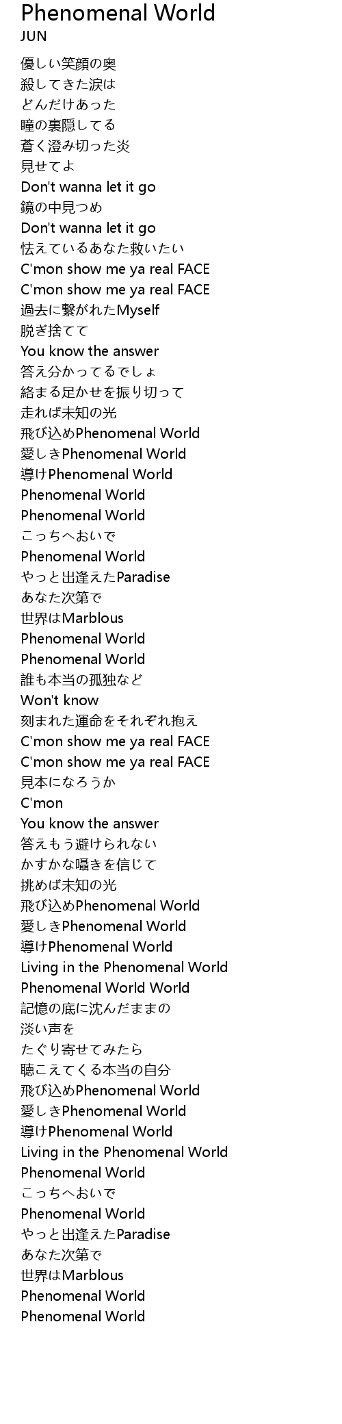 | [01:34.12] | Phenomenal World |