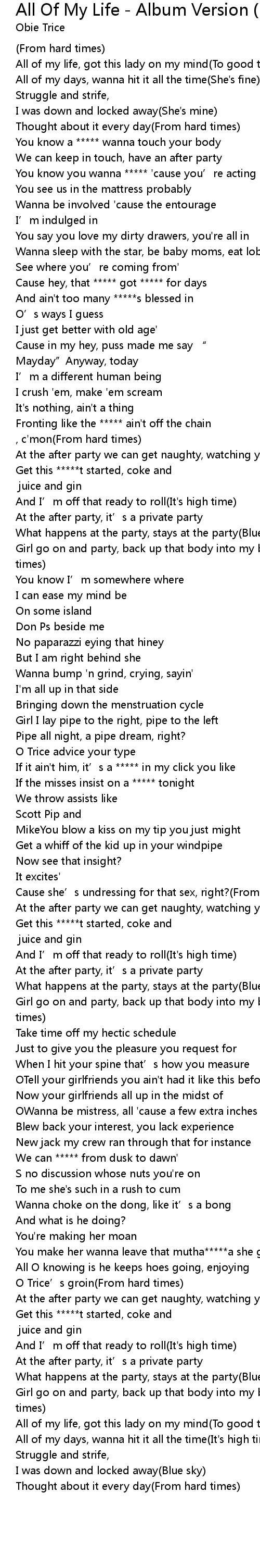 | Song | All Of My Life - Album Version (Explicit) |