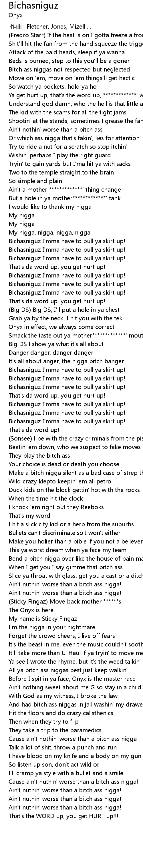 | [01:47.908] | It's all about anger, the nigga bitch banger |