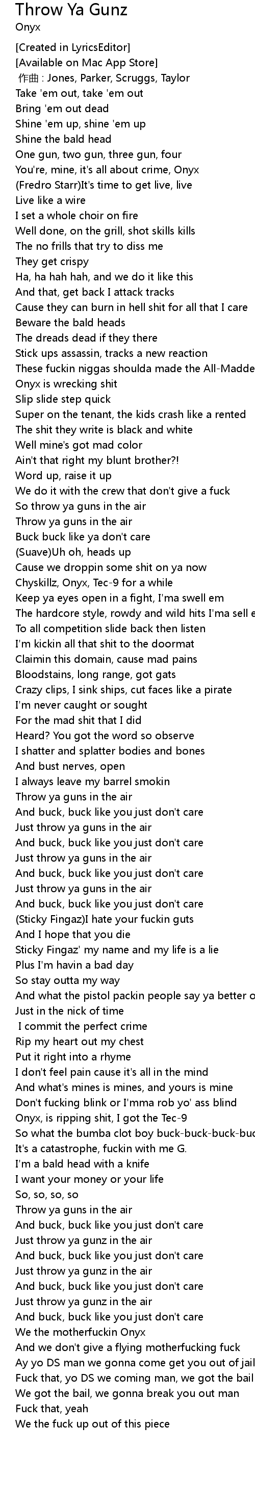 | [02:38.457] | Just throw ya gunz in the air |