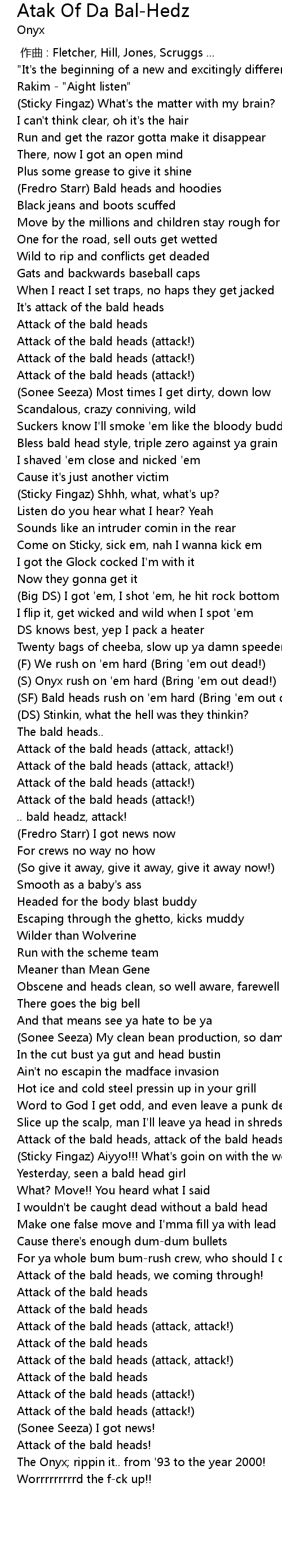 | [00:35.908] | Attack of the bald heads (attack!) |