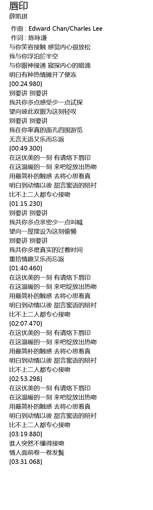| [00:00.00] | 作曲 : Edward Chan/Charles Lee |