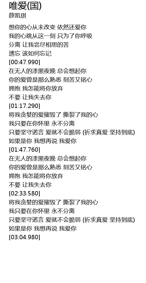 | [02:49.240] | 只要坚守诺言 爱就不会脆弱 (祈求真爱 坚持到底) |