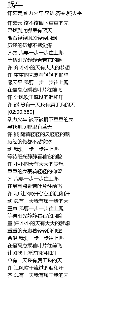 | [02:01.280] | 动力火车 该不该搁下重重的壳 |