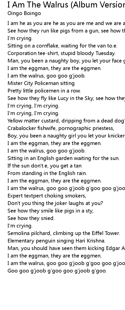 I am the walrus, goo goo g'joob. |