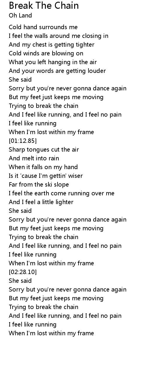 | [01:51.01] | Sorry but you're never gonna dance again |