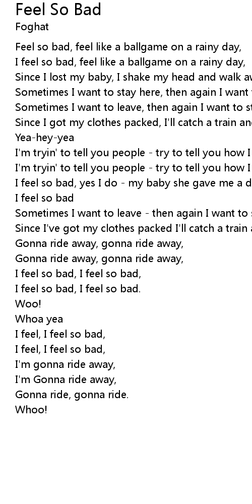 I feel so bad, I feel so bad, |