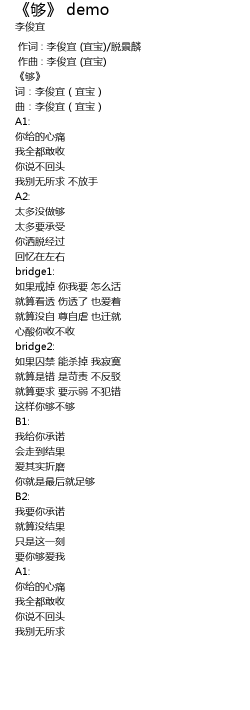 | [00:01.000] | 作曲 : 李俊宜 (宜宝) |