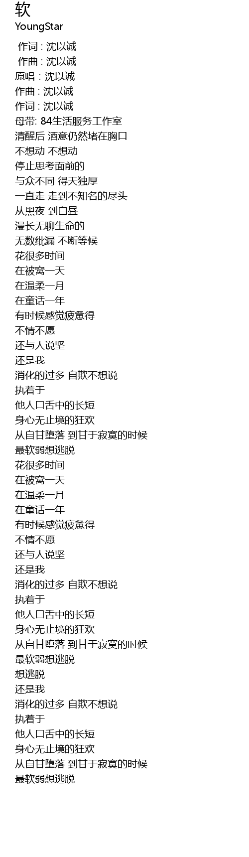 | [00:00.000] | 作词 : 沈以诚 |