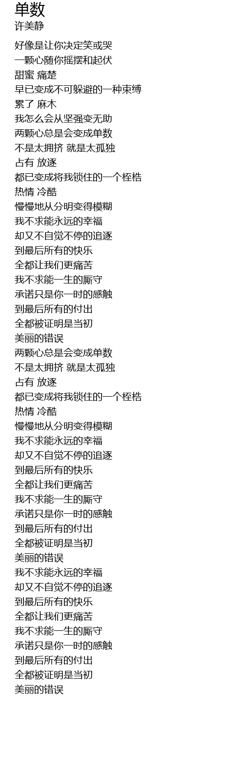 | [00:47.740] | 两颗心总是会变成单数 |
