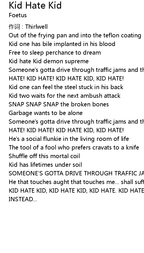 | KID HATE KID, KID HATE KID, KID HATE. KID HATE KID, KID HATE KID, KID HATE MATE! | |