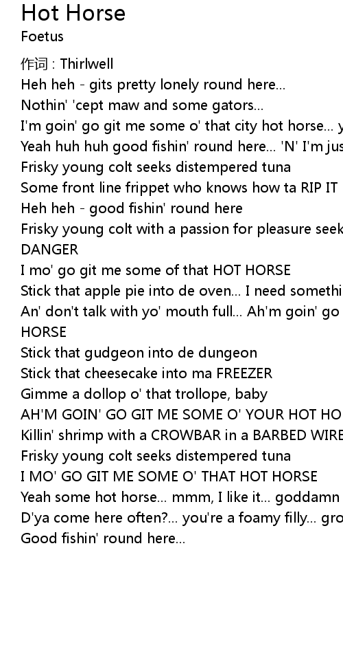 | AH' M GOIN' GO GIT ME SOME O' YOUR HOT HORSE | |