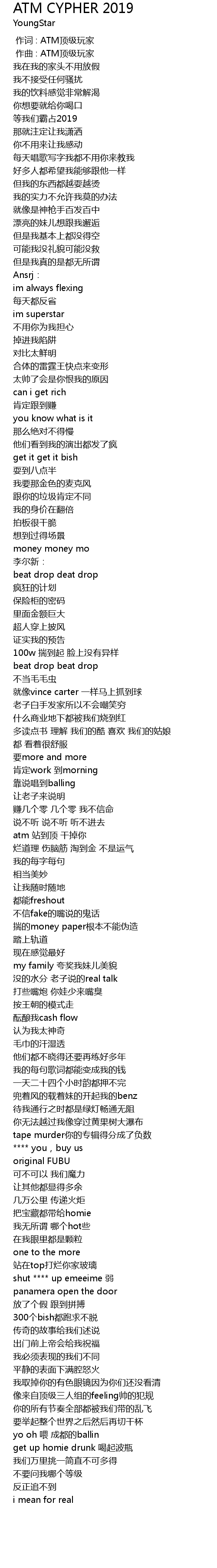 | [00:00.000] | 作词 : ATM顶级玩家 |