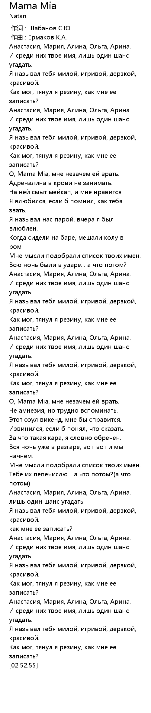 Анастасия, Мария, Алина, Ольга, Арина. |