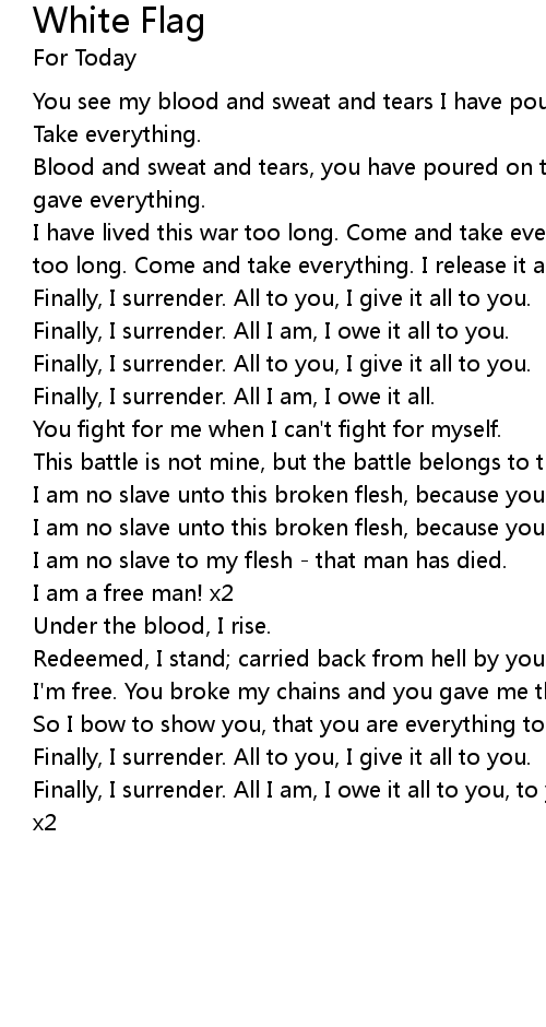 | Finally, I surrender. All to you, I give it all to you. | |