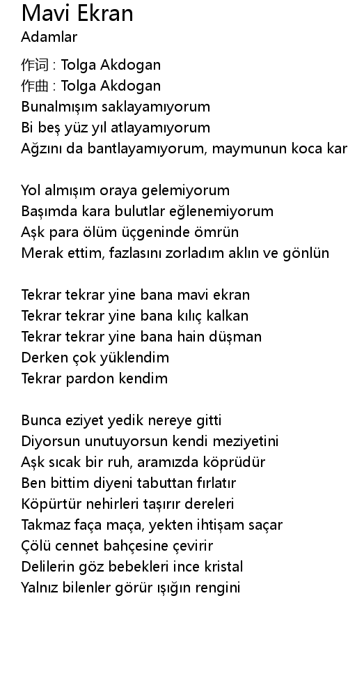 | Tekrar tekrar yine bana kılıç kalkan | |