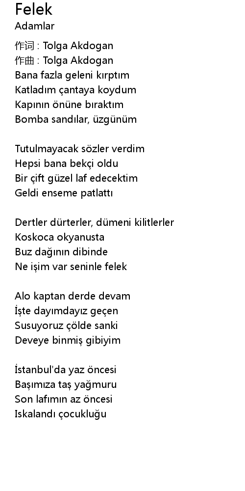 | 作词 : Tolga Akdogan | |