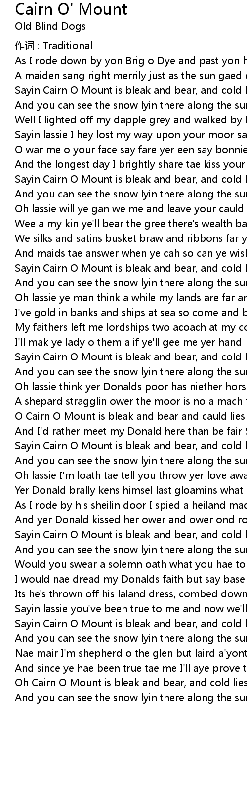 | Song | Cairn O' Mount |