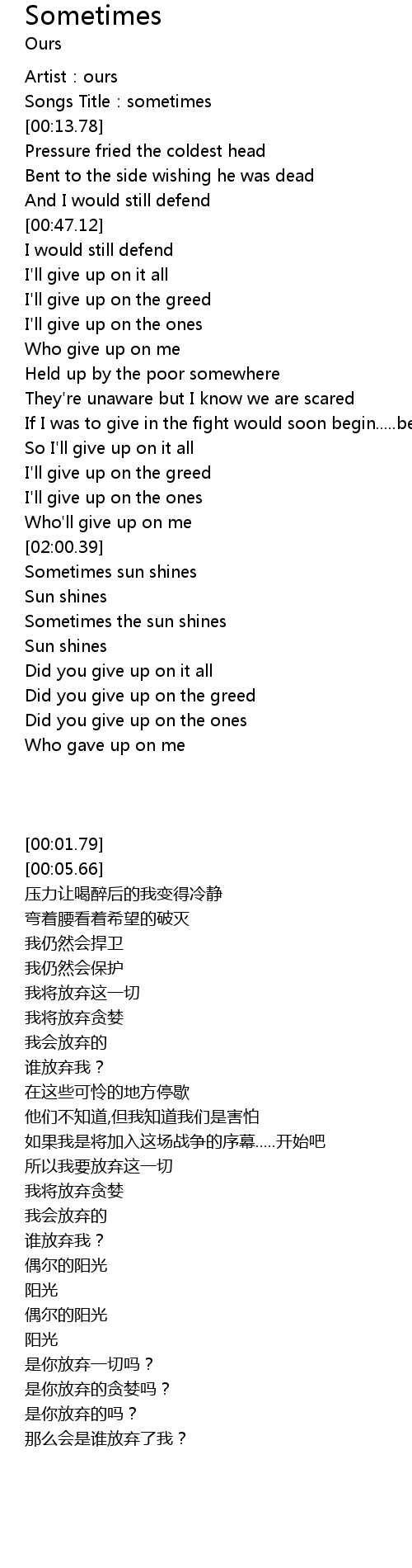 | [02:53.24] | Sometimes the sun shines |