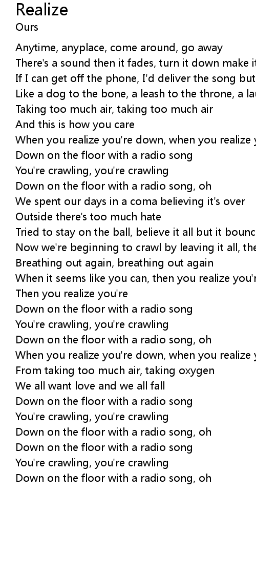 | Down on the floor with a radio song, oh |